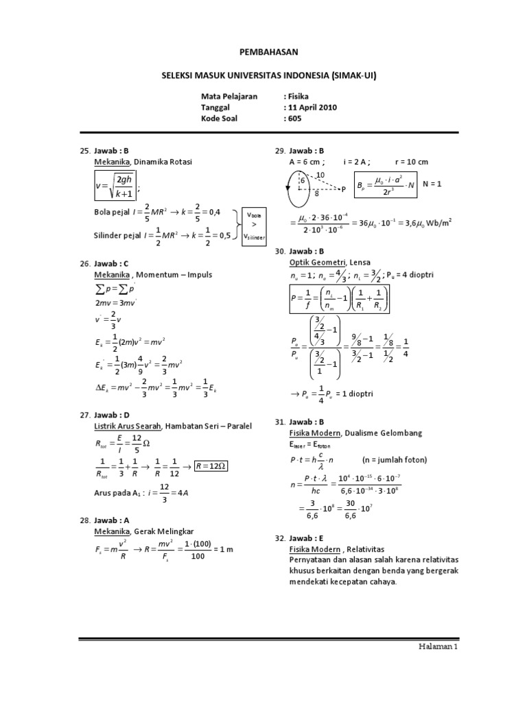 Pembahasan Soal Simak Ui Fisika 2010 Kode 605