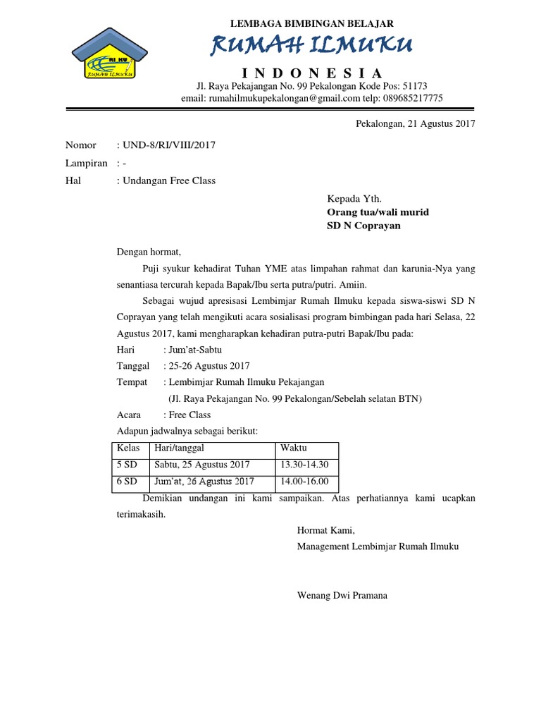 Bael Maret 27 2017 0 Komentar. Kemudian kegiatan ini mampu. Demikian surat undangan ini kami sampaikan.